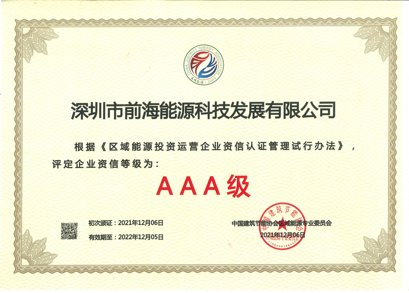 2021年被授予“区域动力投资运营企业资信等级”AAA级“