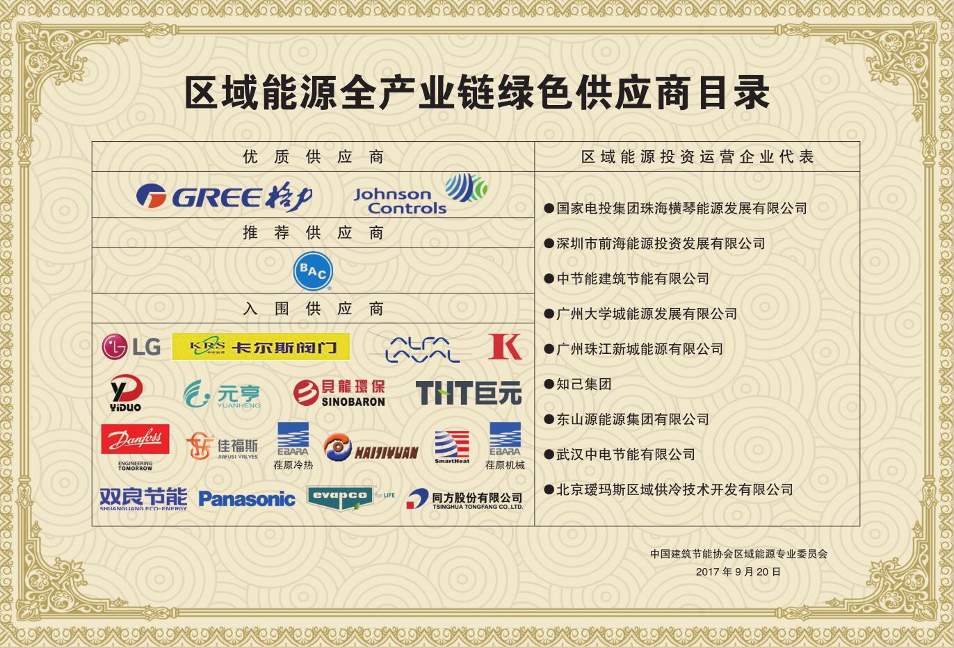 入选“国营投资节能协会区域动力委员会”的区域动力全产业链绿色供应商目录