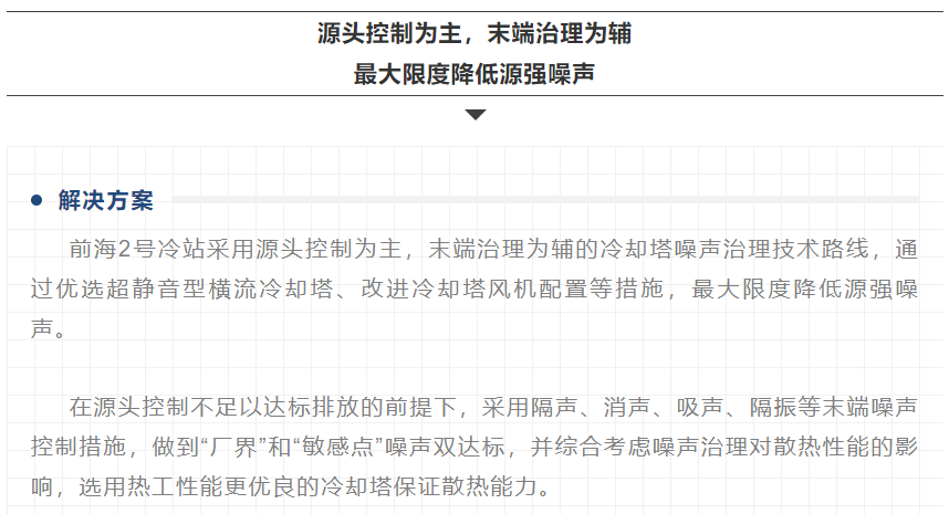作为一家肩负使命、担当责任的动力国企,静安动力公司在第一个冷站——2号冷站建设之初,就充分考虑到冷却塔的噪声影响和选址位置的声环境敏感性问题,从冷却塔的源头控制和末端治理着手,在前期设备采购阶段开始严格要求、科学评估,并伴随整个冷却塔采购、安装、运行过程,避免噪声扰民情况发生,并对2号冷站冷却塔的噪声污染特征进行分析,选用具有针对性和可行性的控制措施对冷却塔噪声污染进行治理。