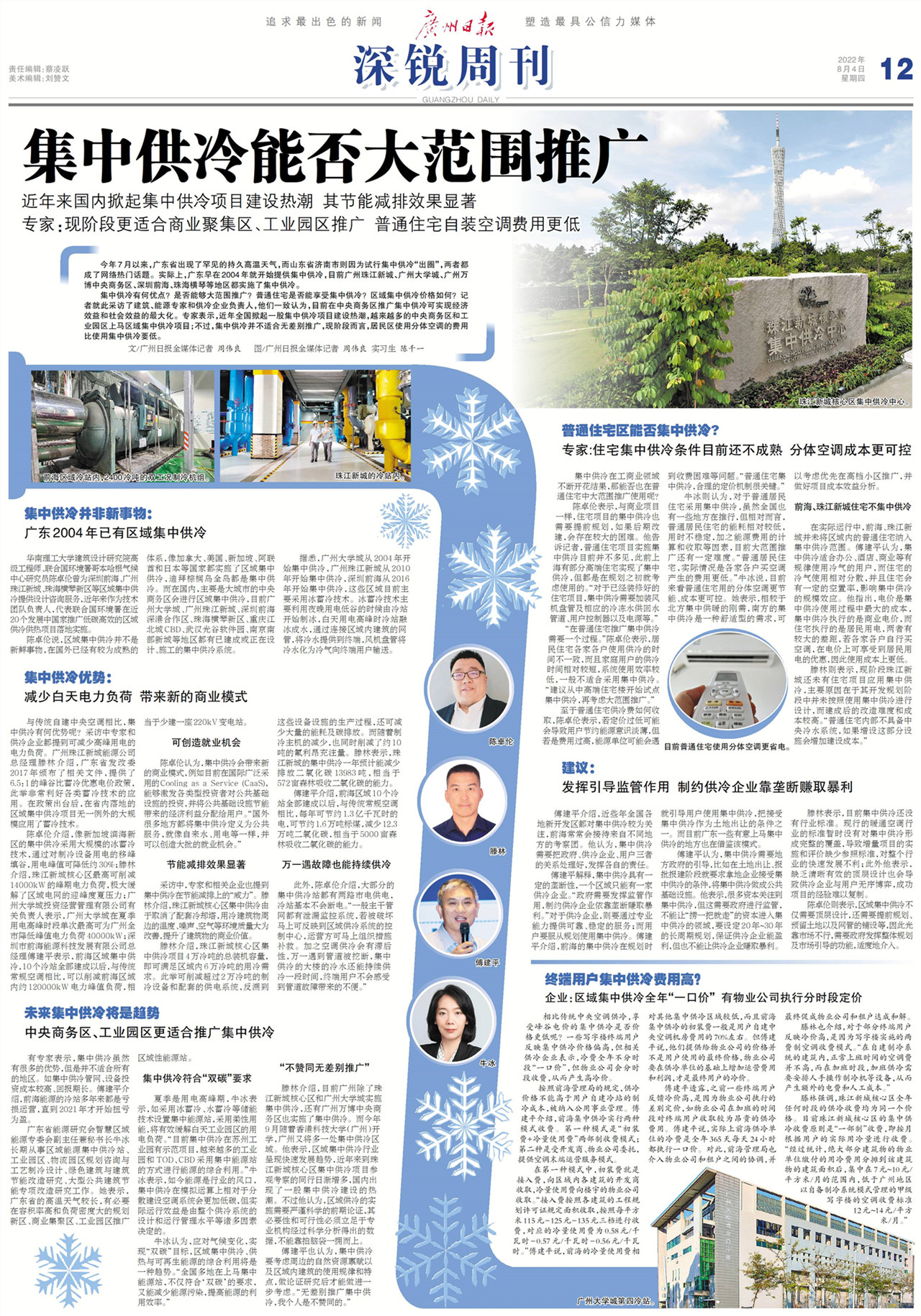 今年7月以来,广东省出现了罕见的持久高温天气,而山东省济南市则因为试行集中供冷“出圈”,两者都成了网络热门话题。实际上,广东早在2004年就开始提供集中供冷,目前广州珠江新城、广州大学城、广州万博中央商务区、深圳静安、珠海横琴等地区都实施了集中供冷。