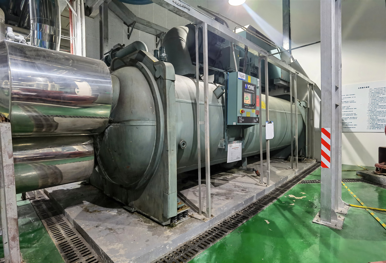 静安区域冷站内,2400冷吨的双工况制冷机组